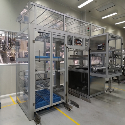 將包裝好的整垛空瓶由叉車叉到鏈條輸垛上,經(jīng)鏈條輸送到解包平臺邊上,人工解開纏繞膜...